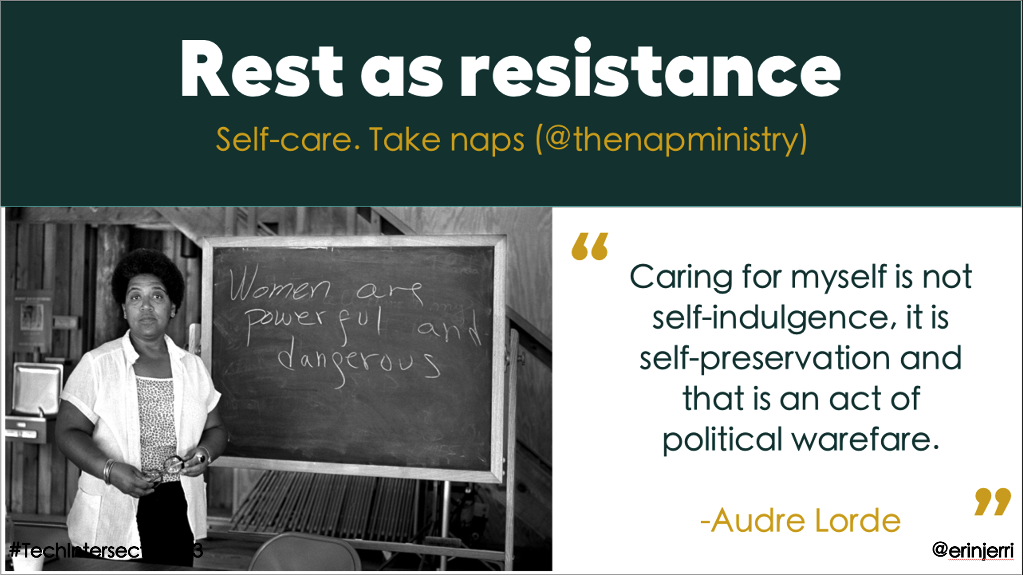 Post Traumatic Growth is challenging for women of color who face so many structural and systemic barriers and being retained in the industry, we possess unique challenges (not only work-life balance, double caregiving for those in the sandwich generation taking care of elderly parents or being young parents), the pay gap, social unrest, questioning if the companies we work for have the foundations we agree with or can tolerate. In defining what makes the most sense for our identities, finding and exercising our voice, making technology more human or humane, I believe we have some hope, even if we are unable to reach some sort of unrealistic expectation of “Post Traumatic Growth” or “Thriving” when honestly for many of us, it is difficult to get through the day, put food on the table, and survive as women of color in tech.